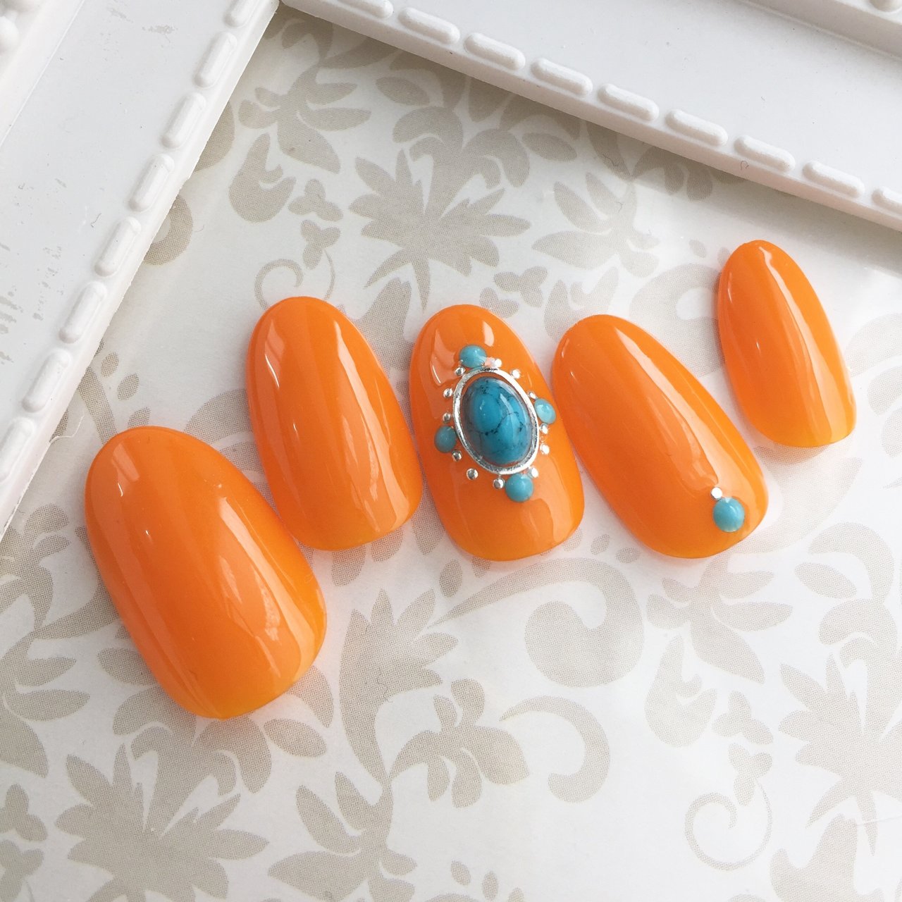 ネイルチップ オレンジ ターコイズ